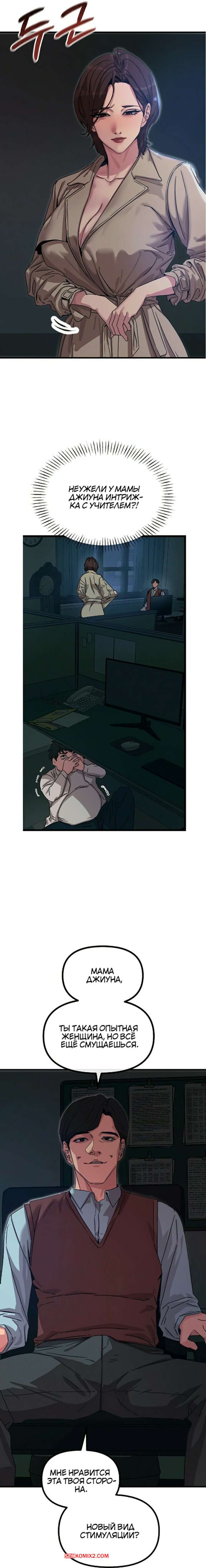 Порно комикс Возвращение неудачника в школьные годы. Часть 3 и 4 и 5 Ночью пухлый парнишка стал свидетелем того, что даже не мог представить. Горячая мамка его одноклассника надела сексуальное белье и встретилась с учителем, чтобы он выебал ее пизденку.