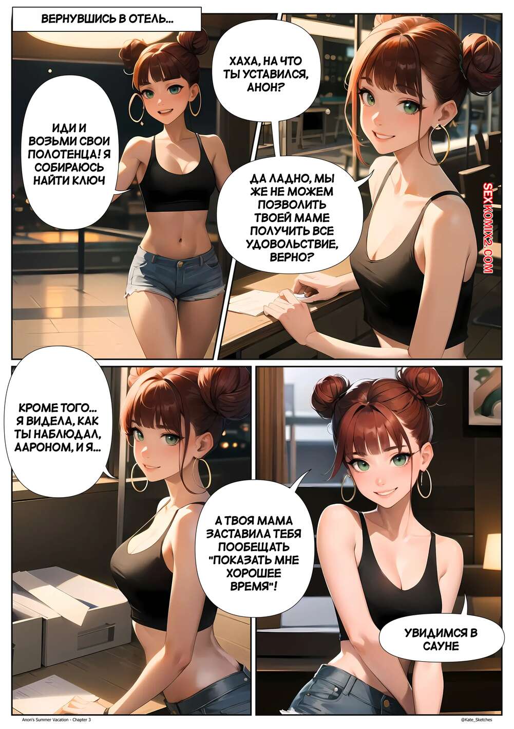 Порно комикс Летние каникулы Анона. Часть 2. Anons Summer Vacation. Kate Sketches