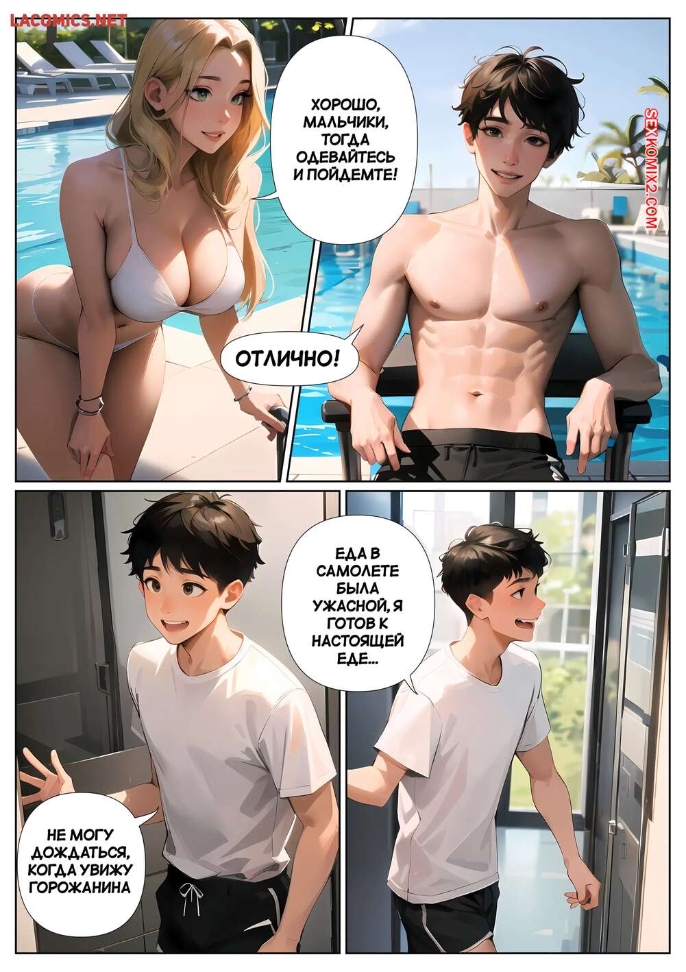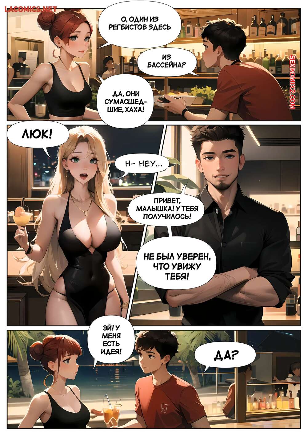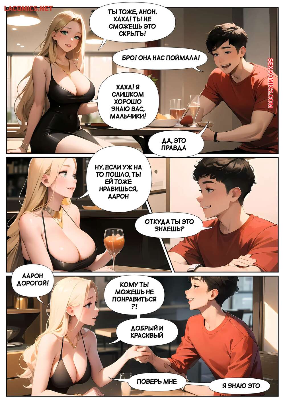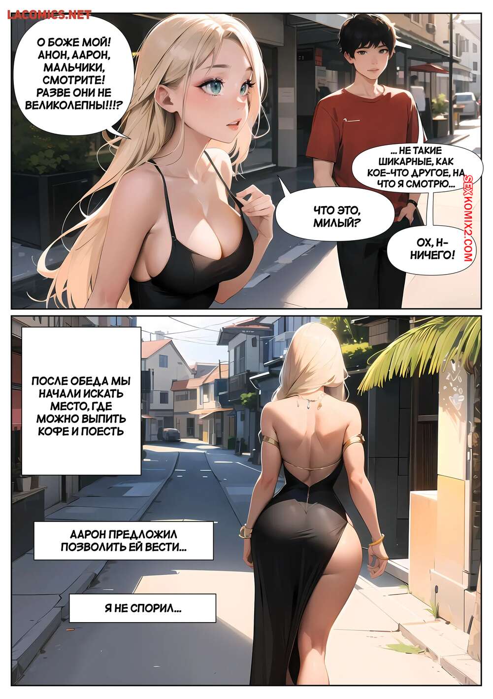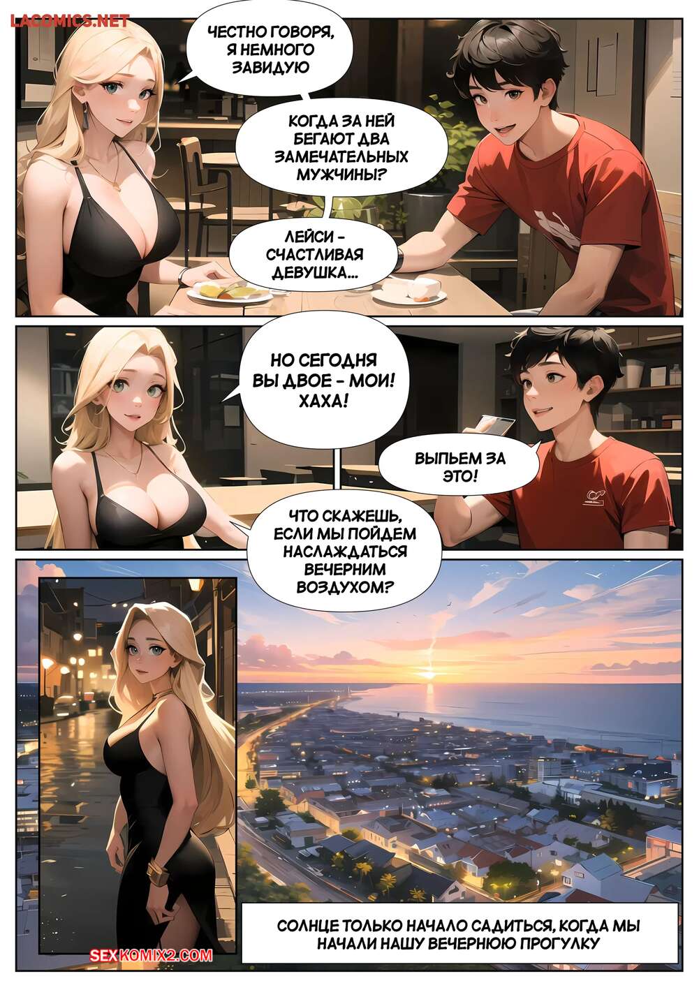 Порно комикс Летние каникулы Анона. Часть 3. Anons Summer Vacation. Kate Sketches Горячая блондинка надела сексуальное платье и отправилась на свидание с симпатичным парнем. Они хорошо провели вечер вместе, после чего красотка стала соблазнять парня, намекая на продолжение встречи.