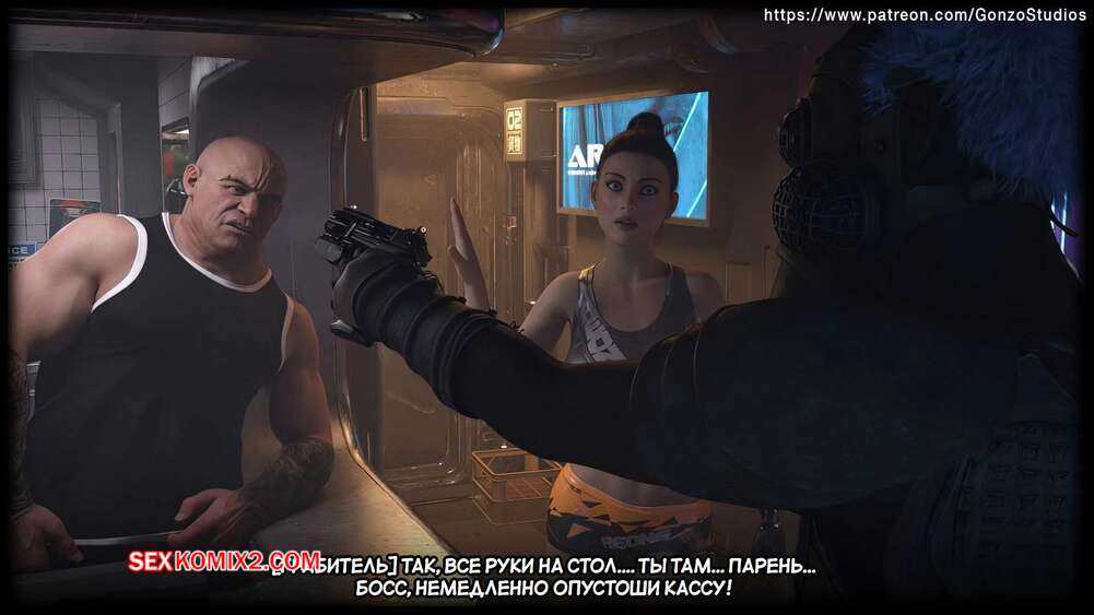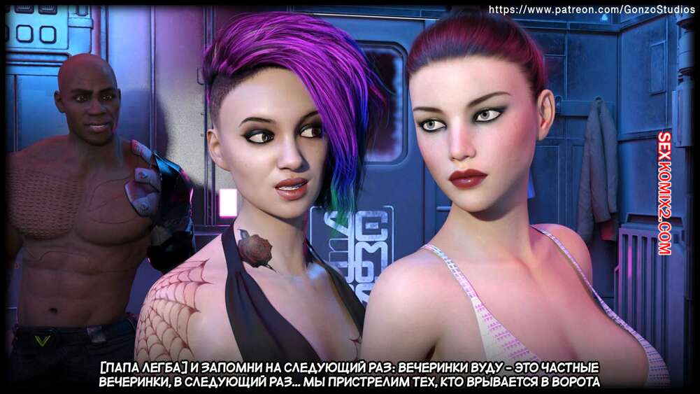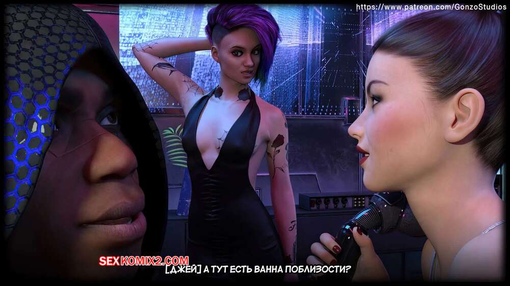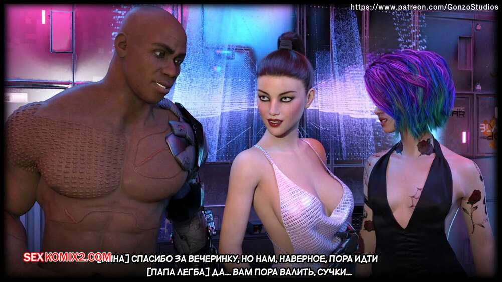 Порно комикс Киберсекс. Cybersex. Sexy3DComics, Gonzo. Возбужденные красотки встретились со своим темнокожим дружком и решили повеселиться. Девушки разделись и стали сосать его большой член, после чего раздвинули ножки и дали себя выебать.