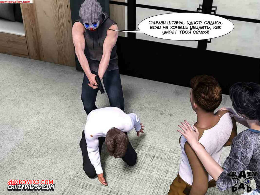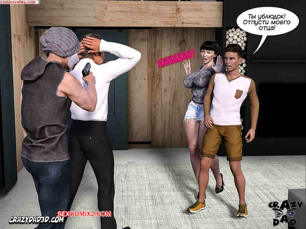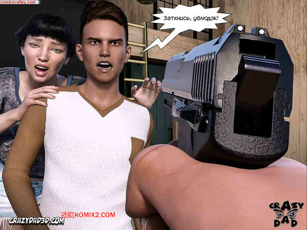 Порно комикс Выхода нет. Часть 5. No Way Out. CrazyDad3D В дом к Алексе снова пробрался бандит. Он стал всем угрожать пистолетом и заставил Алексу заняться сексом с Деннисом, пока ее муж наблюдал за ними и дрочил.