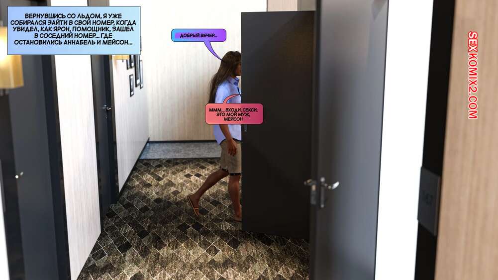 Порно комикс Новые соседи. Часть 23. The New Neighbors. Antalore42 Мэйсон и Аннабель пригласили своих соседей отправиться на курорт вместе. Адам и Лили с радостью согласились, и совсем скоро парень обнаружил, что Аннабель стала трахаться с незнакомцами.