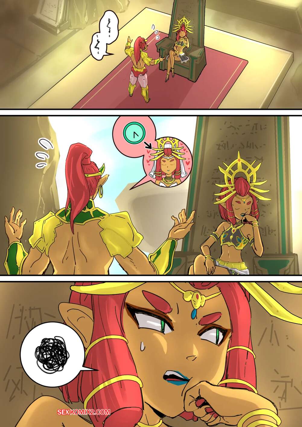 Порно комикс The Legend of Zelda. Rijus Dungeon Date in Breath of the Wild. pzx. Рыжая красотка заметила стояк парня и сильно возбудилась. Она разделась и вставила в себя хуй паренька, чтобы он хорошенько ее выебал и доставил ей удовольствие.