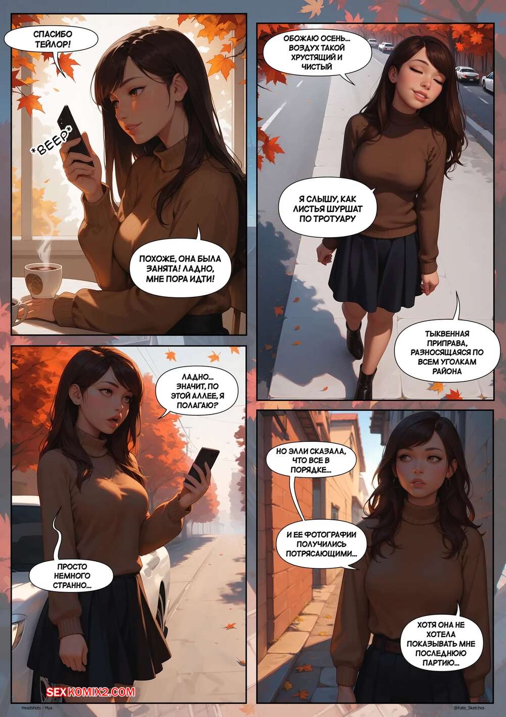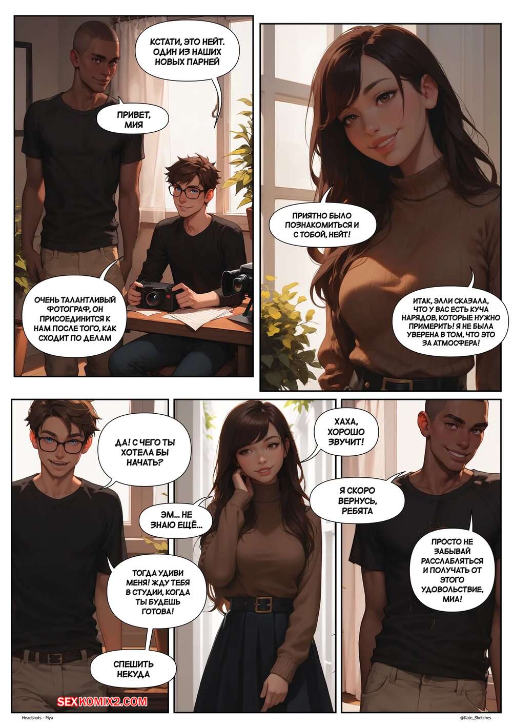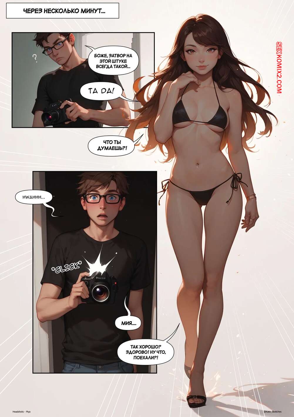 Порно комикс Мия. Хэдшоты. Mya. Headshots. Kate Sketches. Горячая брюнетка встретилась со своим дружком, чтобы устроить фотосессию. Красотка показала свое шикарное тело в сексуальных нарядах, после чего дала пареньку себя выебать.