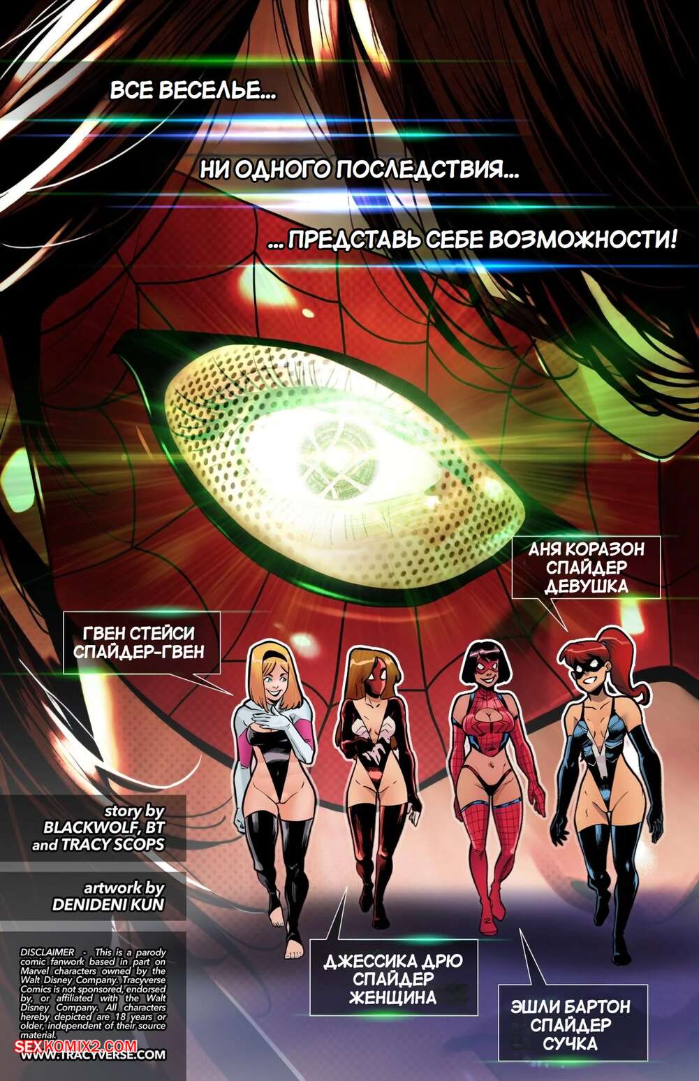 Порно комикс Marvel. Спайдер сучки. Sluttish Spider Bitches Night Out. Tracy Scops Горячие красотки супергероини обожают трахаться. Они соблазняют парней вокруг своими аппетитными формами, после чего дают им себя хорошенько выебать во все дырочки.