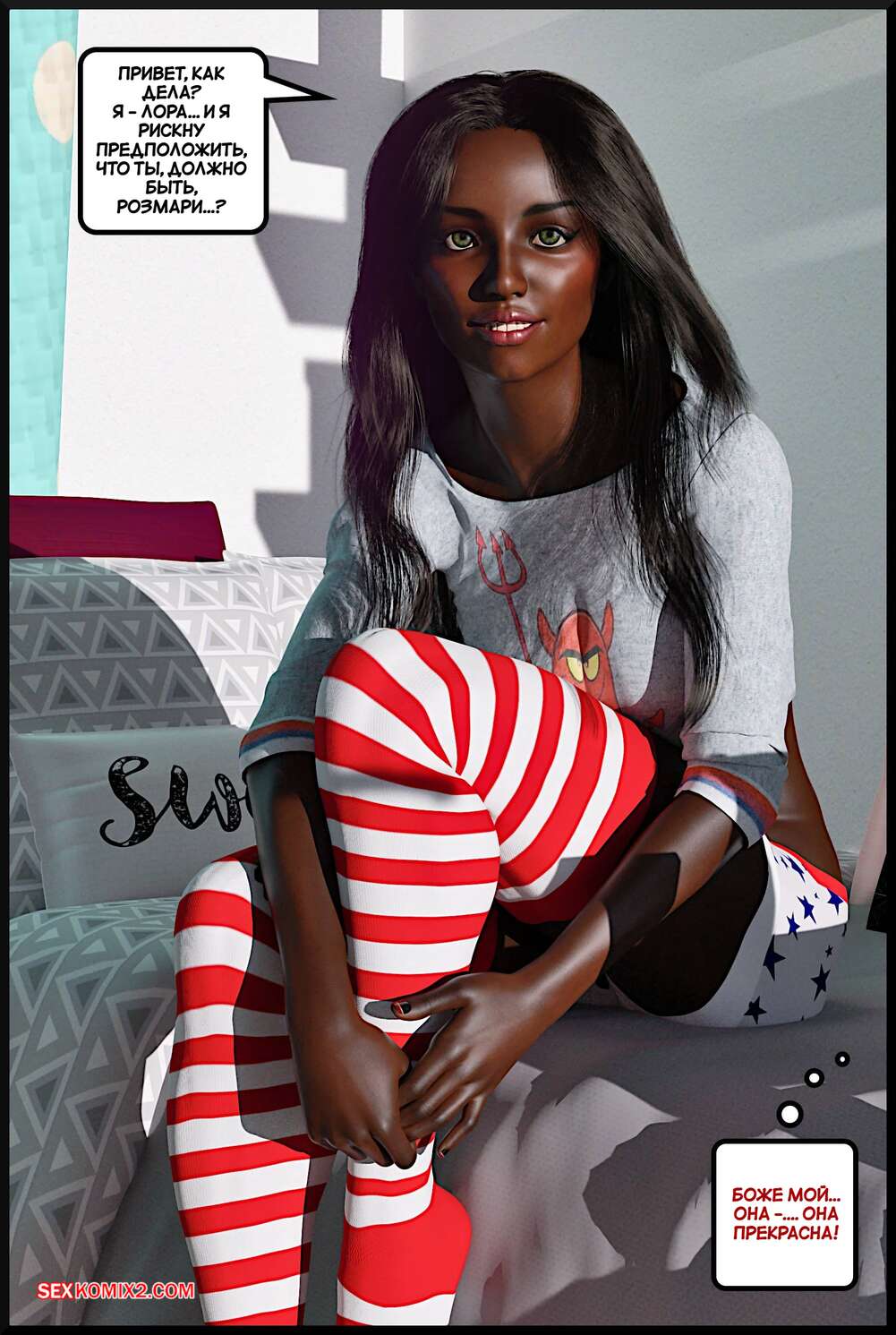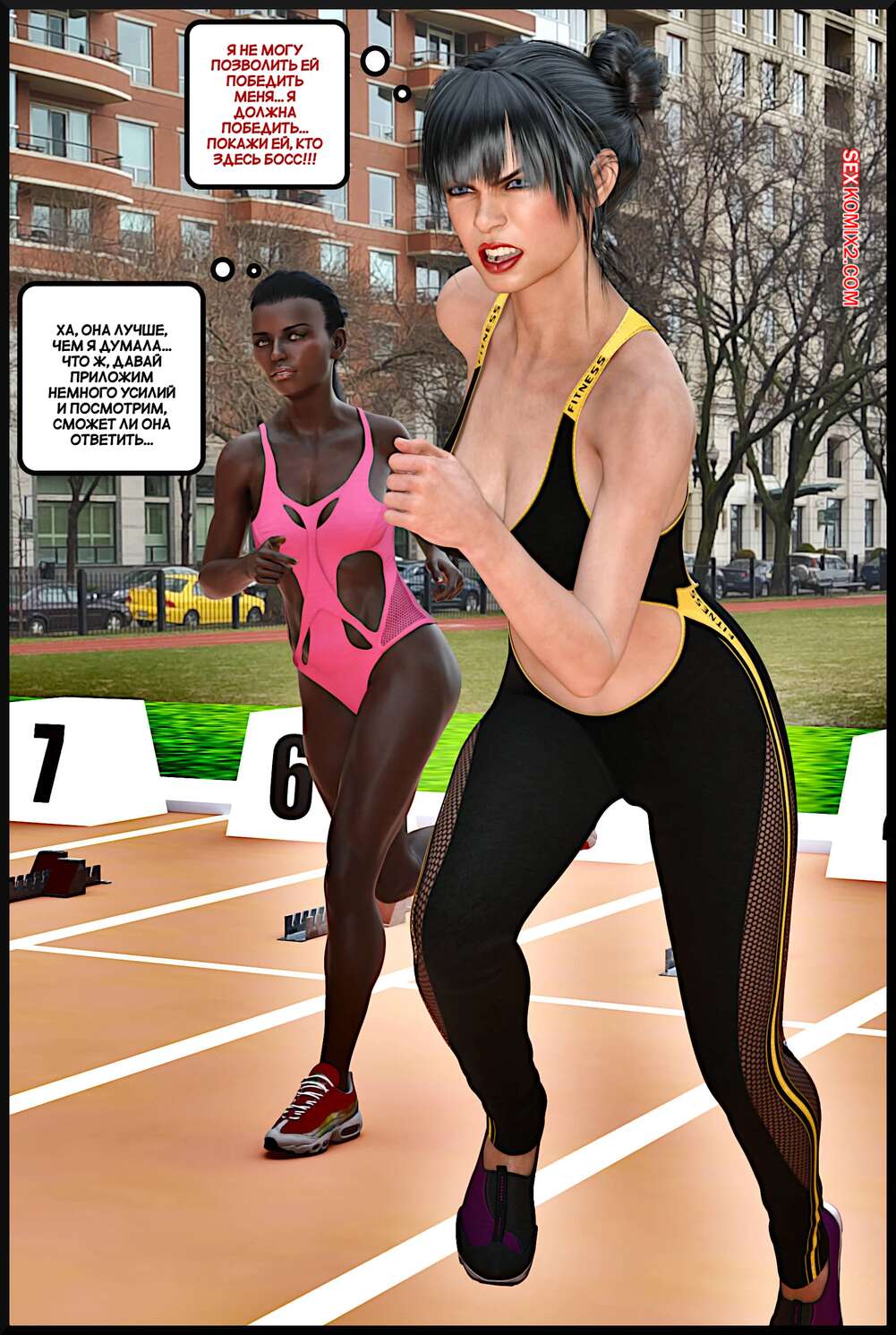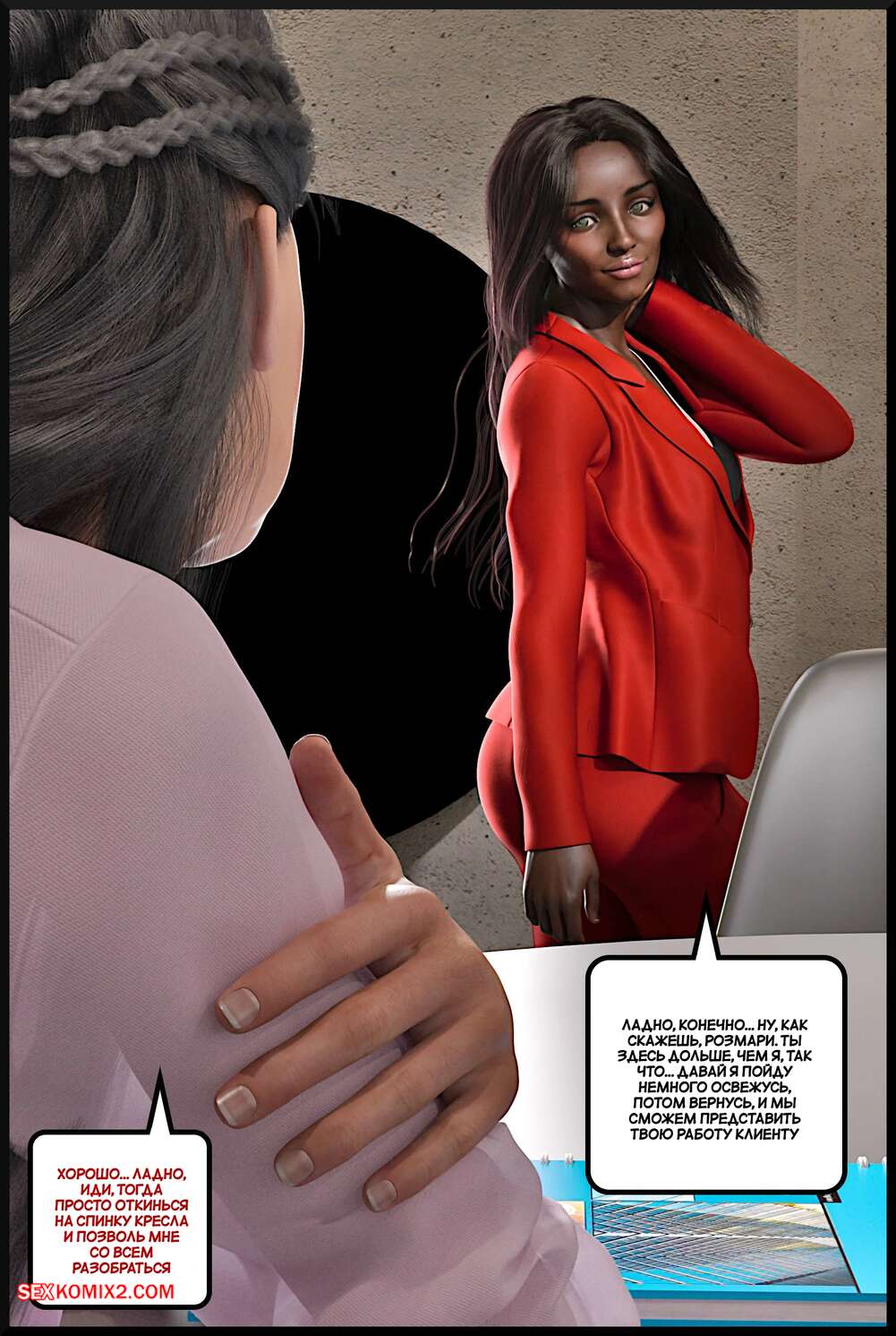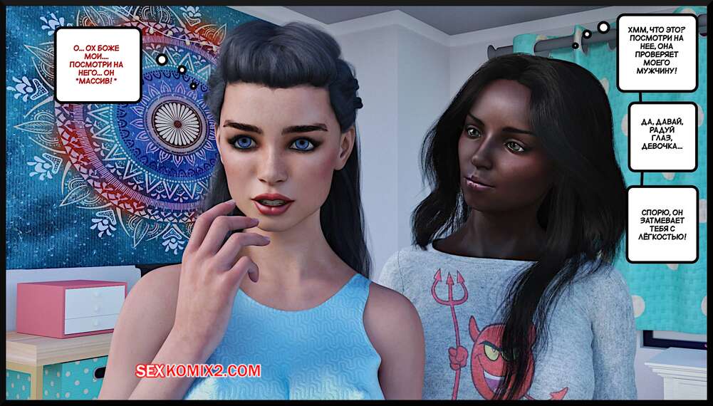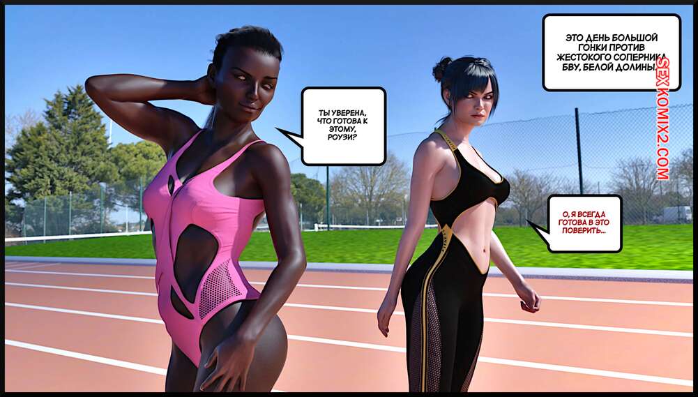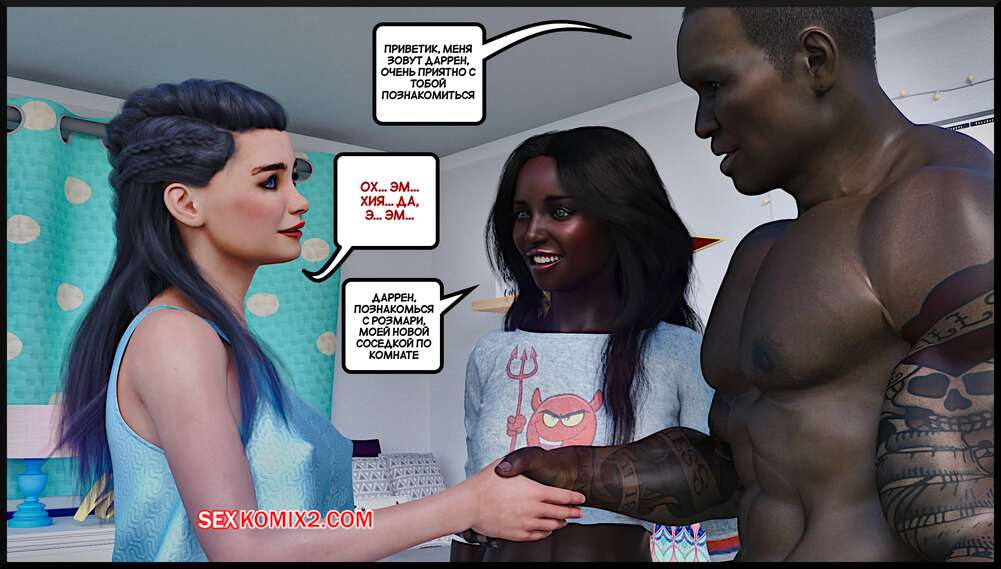 Порно комикс Соперница. The Rival. Alison Hale. Темнокожая брюнетка привела своего парня в общагу и познакомила его со своей знакомой. Красотки разделись и отсосали хуй парня, после чего он их хорошенько выебал.