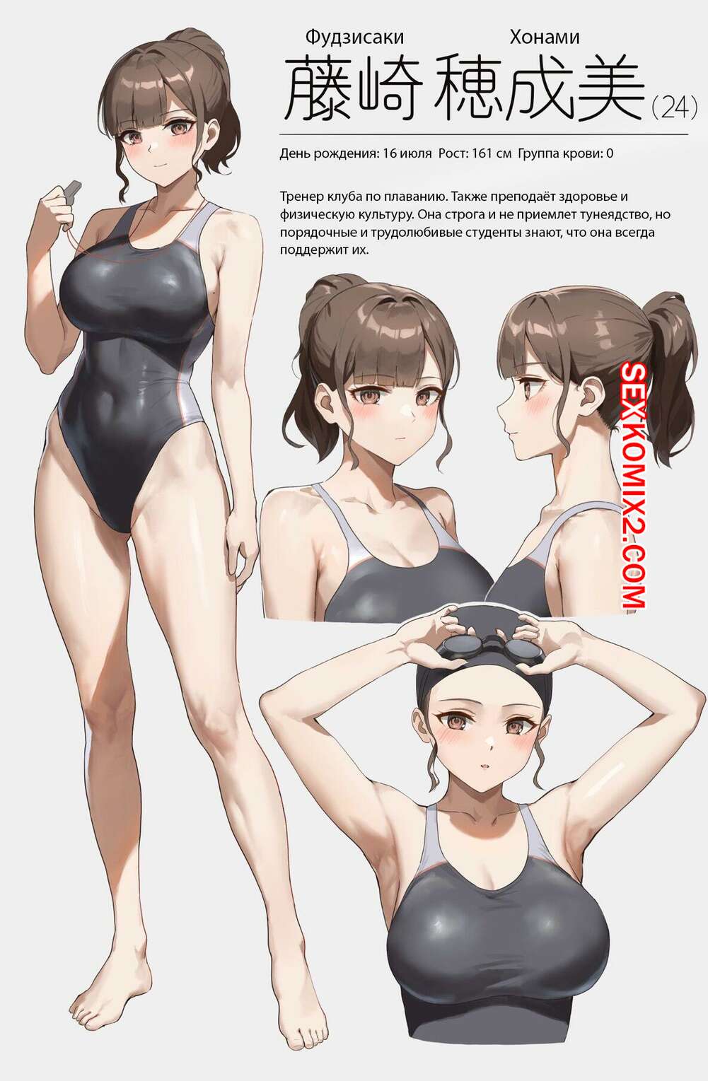 Порно комикс Тренер клуба по плаванию, которая разрешает потрогать грудь в награду. Часть 1 Горячая брюнетка с шикарным телом работает тренером по плаванию в школе. Она придумала мотивацию для парней, чтобы они упорно тренировались. После занятия красотка уединилась с парнем и дала ему потрогать свои большие сиськи.