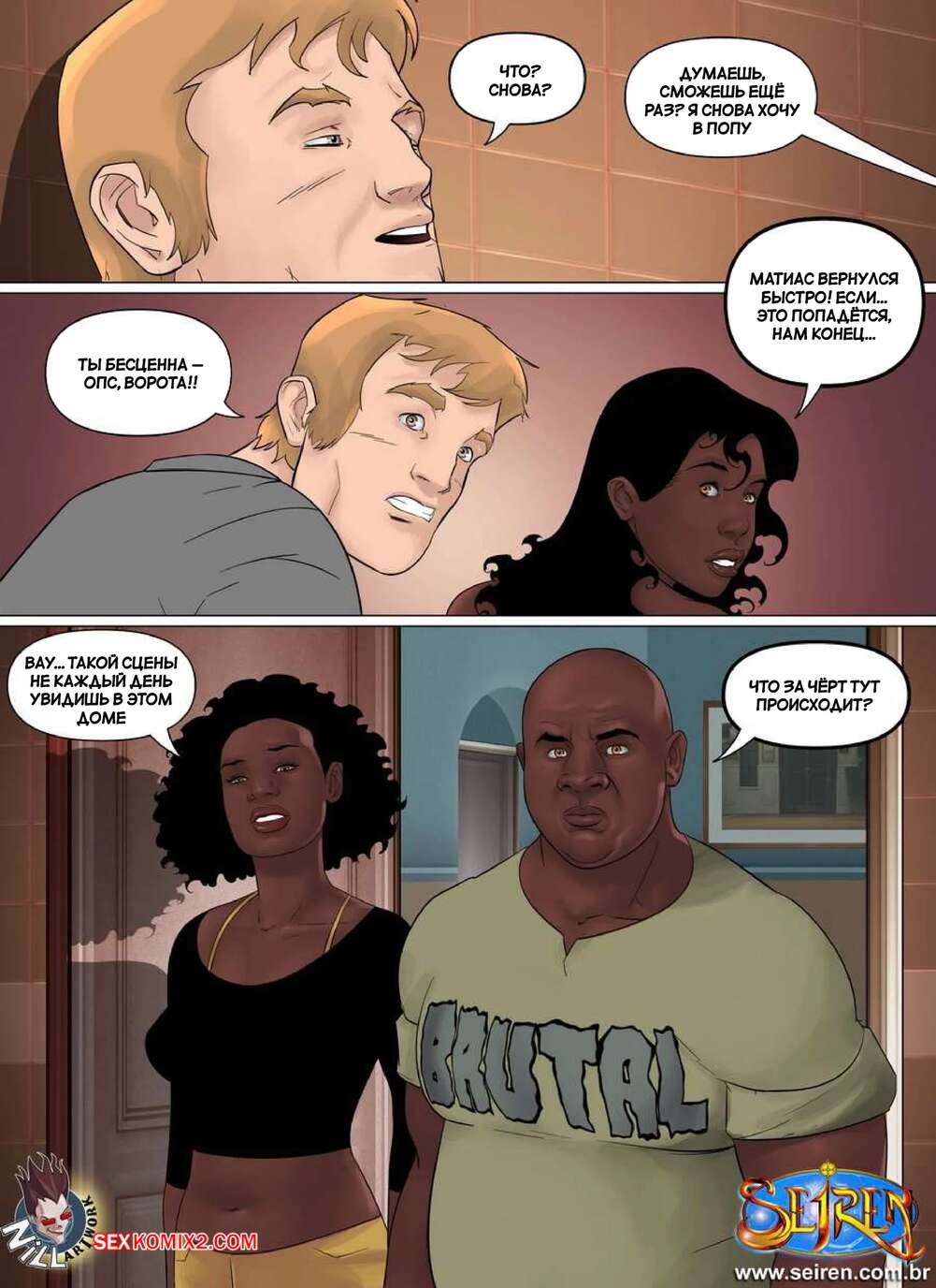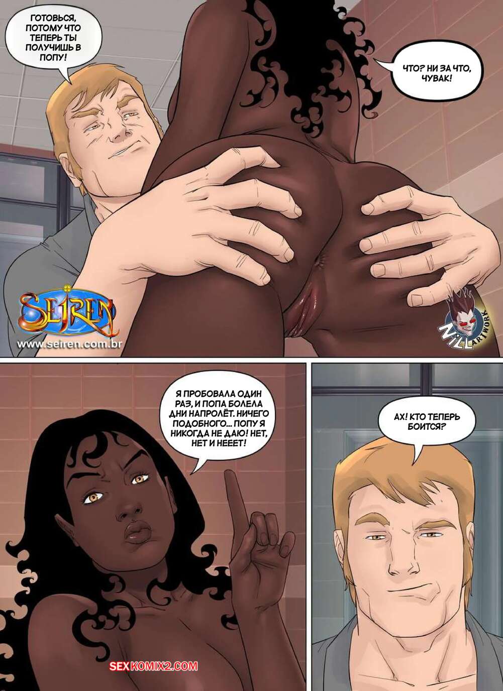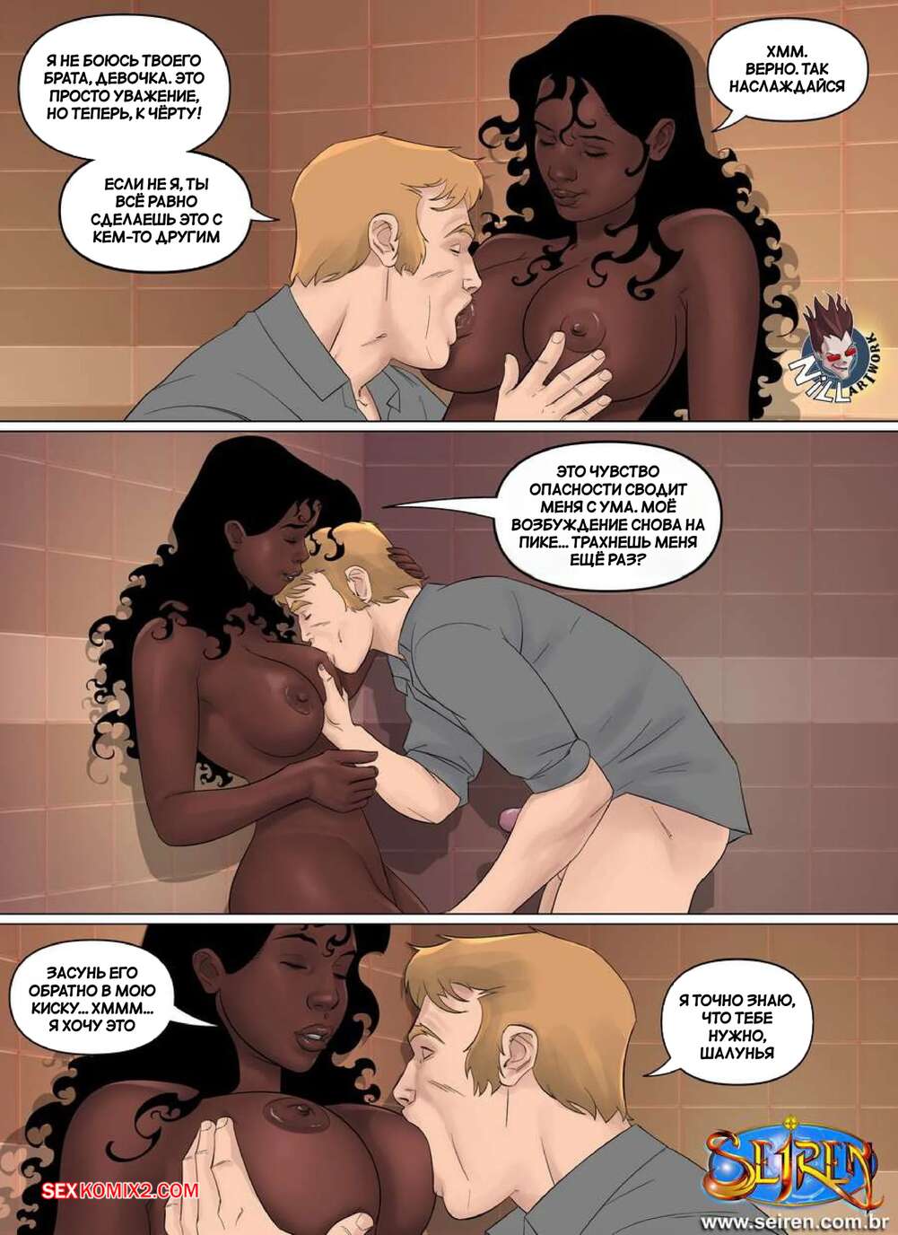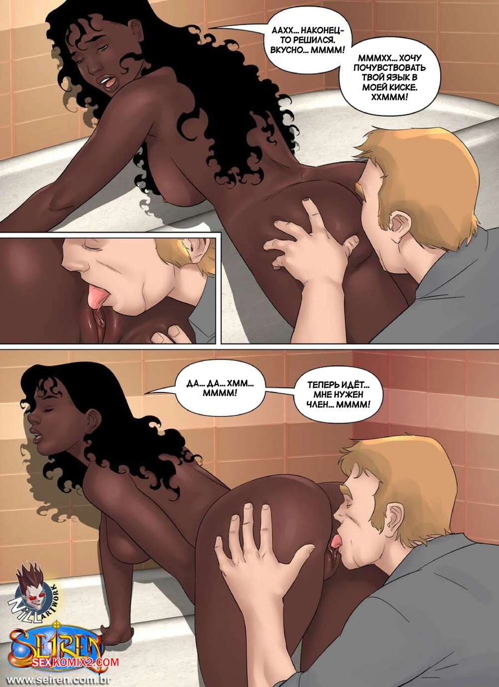 Порно комикс Маленькая принцесса. Часть 2. Little Princess. Seiren Темнокожая красотка отсосала член друга своего брата и жаждет продолждения. Девушка раздвинула ножки и дала парню сперва выебать свою пизденку, а затем попку. К счастью, они успели прямо перед возвращением брата.
