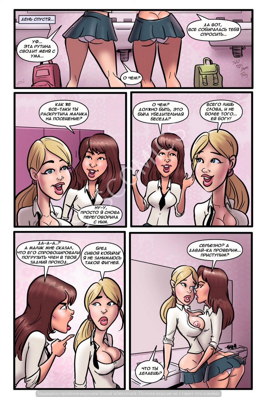 Порно комикс «Лазейка в рай. История вторая». Молоденькая блондинка продолжает искупать свои грехи, ублажая всех, кто её попросит. В этот раз она исполняет желание двух чернокожих парней, их давняя мечта секс в троём с сексуальной блондиночкой. После тяжелого дня она возвращается домой и рассказывает своей лучшей подруге, о новом способе пройти по дороге в лай. Подруга тоже решила воспользоваться моментом и исполнить свою мечту, она давно хотела попробовать секс с девушкой. И две горячие подруги занимаются сочным лесби поревом!