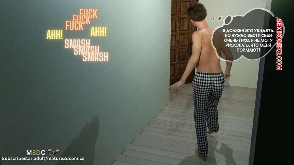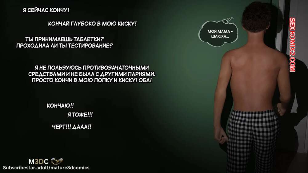 Порно комикс Полуночный вояж. Часть 1. Midnight Voyuer. Mature3DComics. Молодой парнишка проснулся ночью со стояком и услышал стоны из комнаты своей матери. Он пошел проверить что происходит и обнаружил, как два незнакомца ебут его мамку во все дырочки.