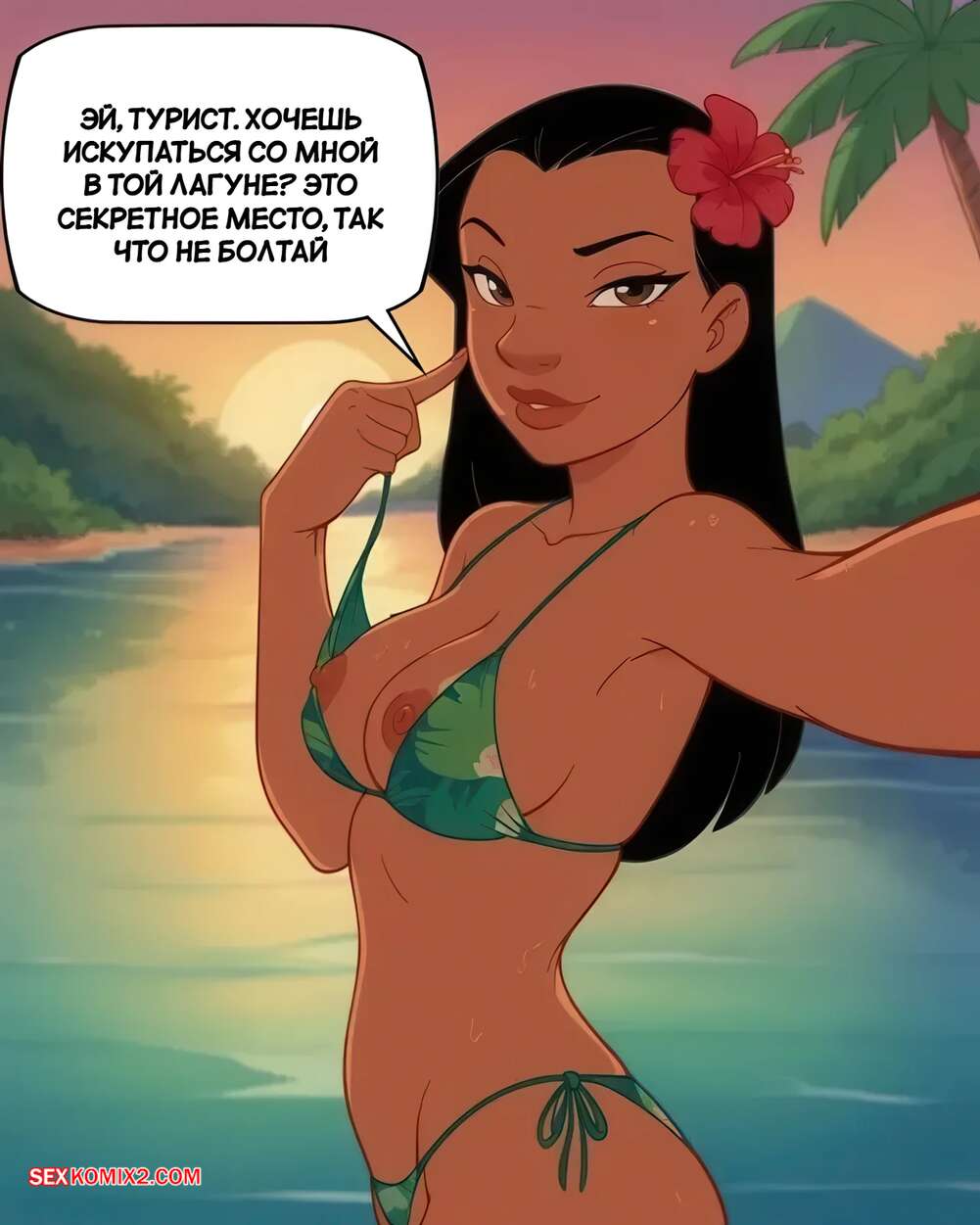 Порно комикс Лило и Стич. Нани трахается с туристом. Nani Fucks a Tourist Парень приехал на курорт, где сразу же встретил красотку Нани. Девушка сразу положила глаз на туриста и пригласила его к себе. Возбужденная брюнетка разделась и отсосала хуй парня, после чего дала ему себя выебать и кончить ей в пизденку.