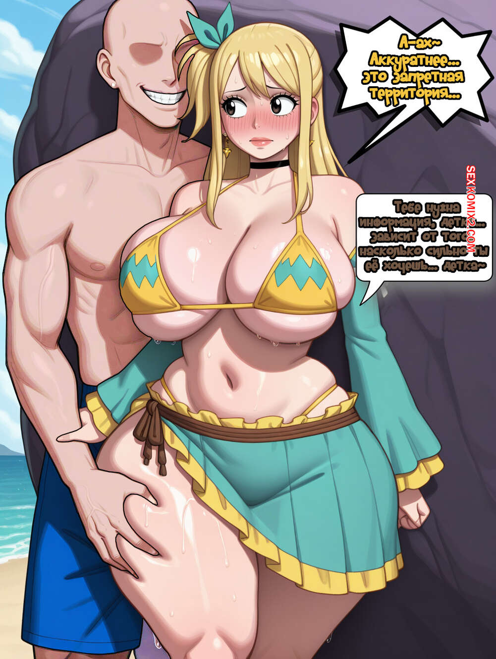 Порно комикс Хвост Феи. Люси Хартфилия X Bwc. Lucy Heartfilia X Bwc. BaldSensei. Сочная блондинка с огромной задницей отправилась на пляж и познакомилась там с двумя горячими парнями. Она предложила им секс втроем и забеременела от одного из них.