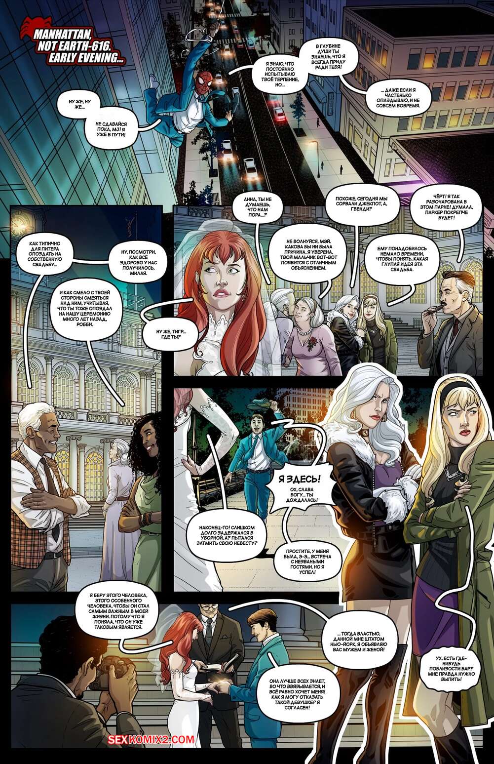 Порно комикс Spider Man. Новомодные паутинки. The Newly Webs. Tracy Scops Питер и Мэри Джейн празднуют свадьбу и хотят много трахаться. Рыжая красотка дает тигру выебать себя во все дырочки, пока их подруги отправились на послесвадебную тусовку, где их тоже ждет много членов.