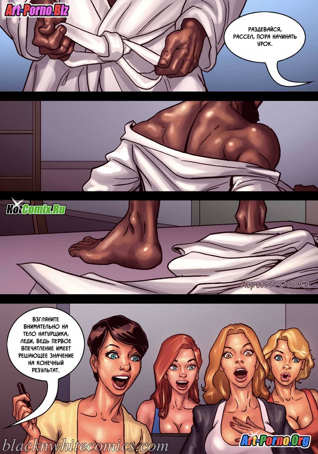 Порно комикс «Художественный кружок». В художественном кружке состоят одинокие девушки, и руководительница этого кружка привела для позирования накаченного мужчину с рельефным телом. Когда он разделся, девушки были приятно шокированы не только от его кубиков на прессе, но и от огромного члена свисающего у него между ног. Вовремя рисования они так сильно возбудились, что начали таскать его по очереди в туалет и трахаться с ним. Даже пожилая руководительница не упустила свой шанс и отсосала ему.