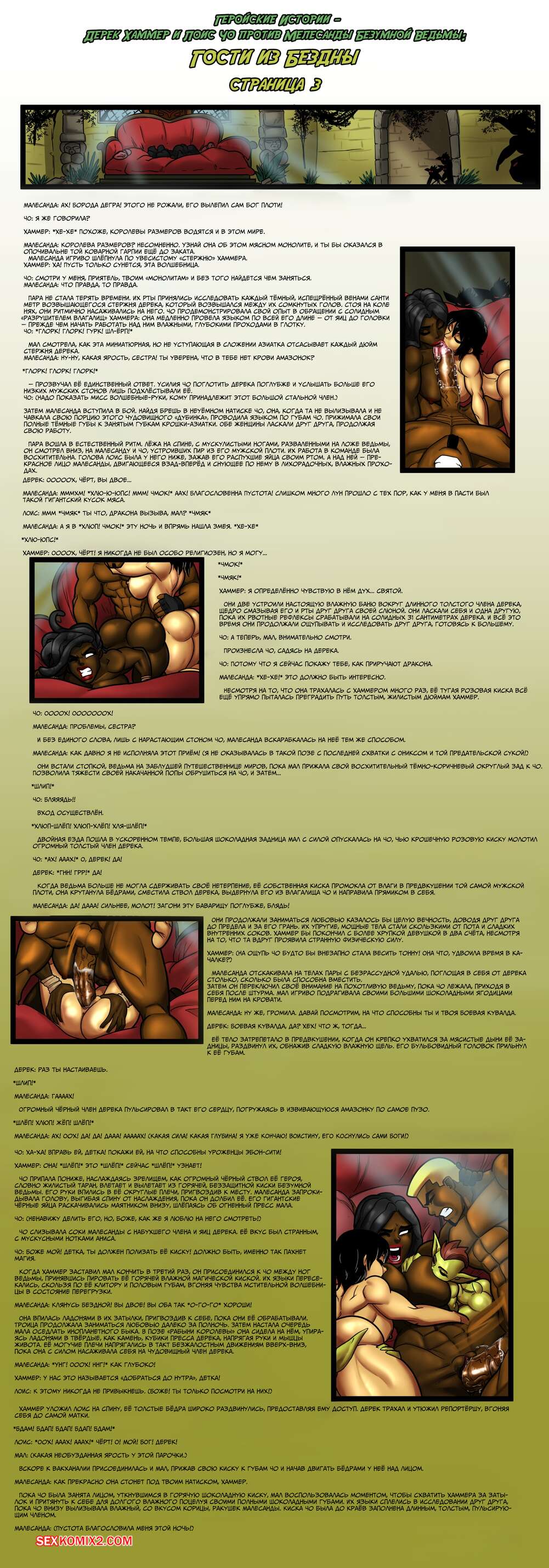 Порно комикс Геройские истории. Гости из Бездны. Rabies T Lagomorph Горячие амазонки без ума от огромного члена темнокожего парня. Они раздеваются и отсасывают у него, после чего раздвигают ножки и дают себя хорошенько выебать.