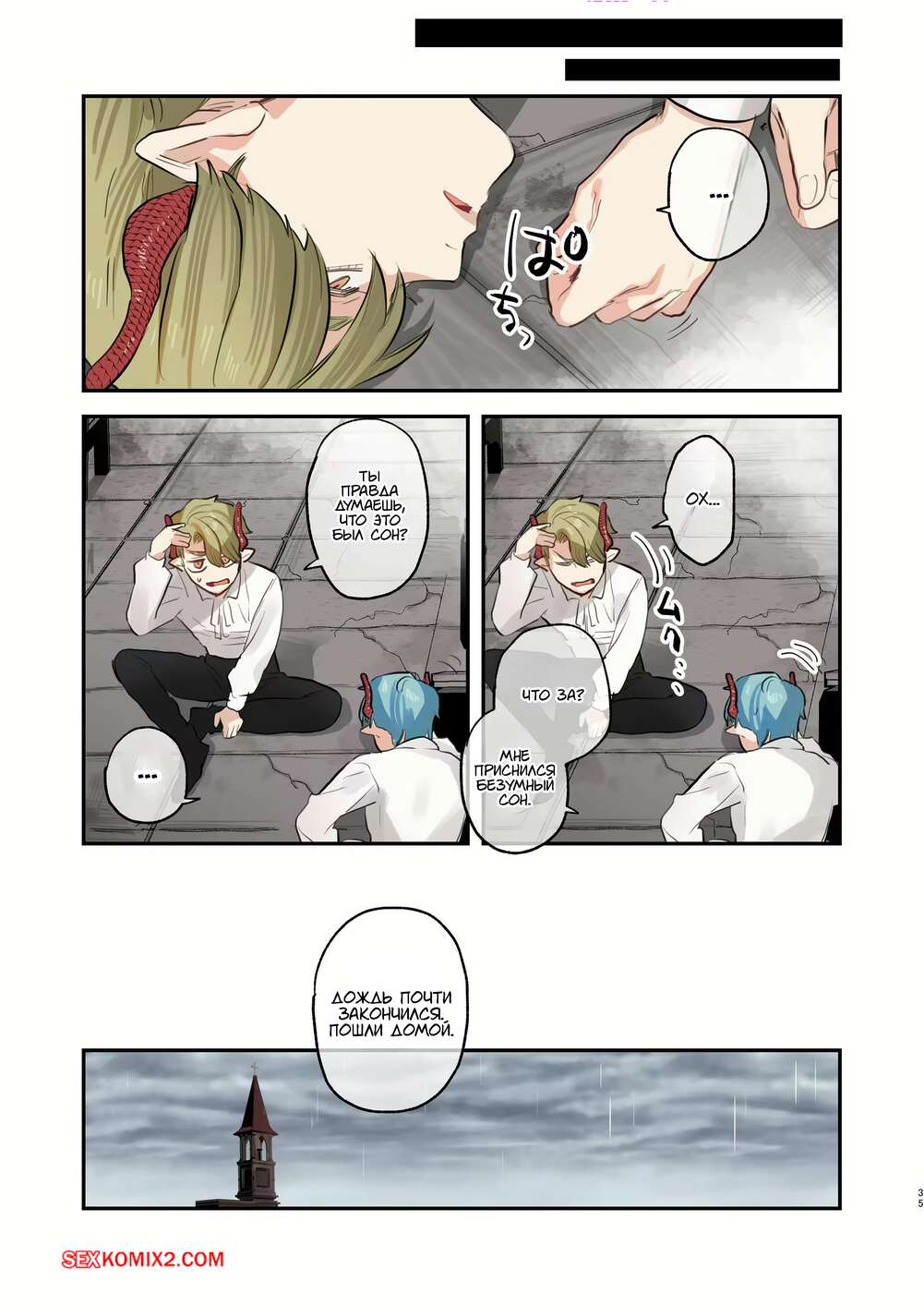 Порно комикс Секс во сне в заброшенной церкви желаний. ONIBEN Katze Парнишка застал горячую брюнетку спящей и не смог устоять перед ее голым телом. Он стал ласкать пальчиками пизденку девушки, после чего наконец вставил в нее свой член.