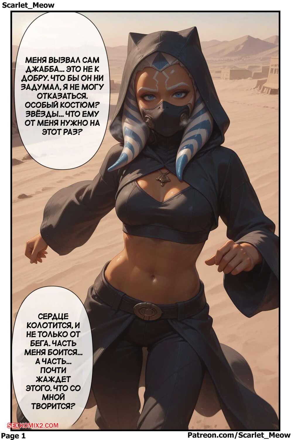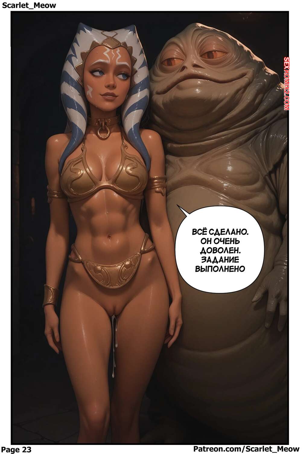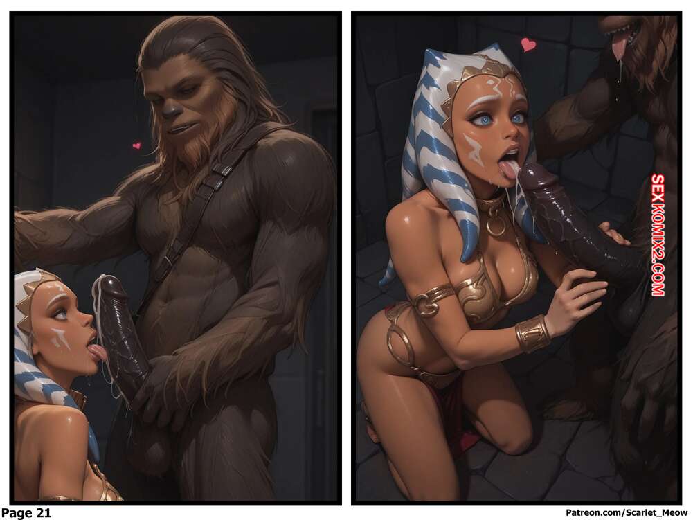 Порно комикс Звездные войны. Темный путь. Часть 2. Отчаяние приводит к желанию. A Dark Path Красотка Асока попала в плен к Джабе и оказалась в камере с Чуи. Она стала соблазнять его своим аппетитным телом, после чего раздвинула ножки и дала себя выебать.
