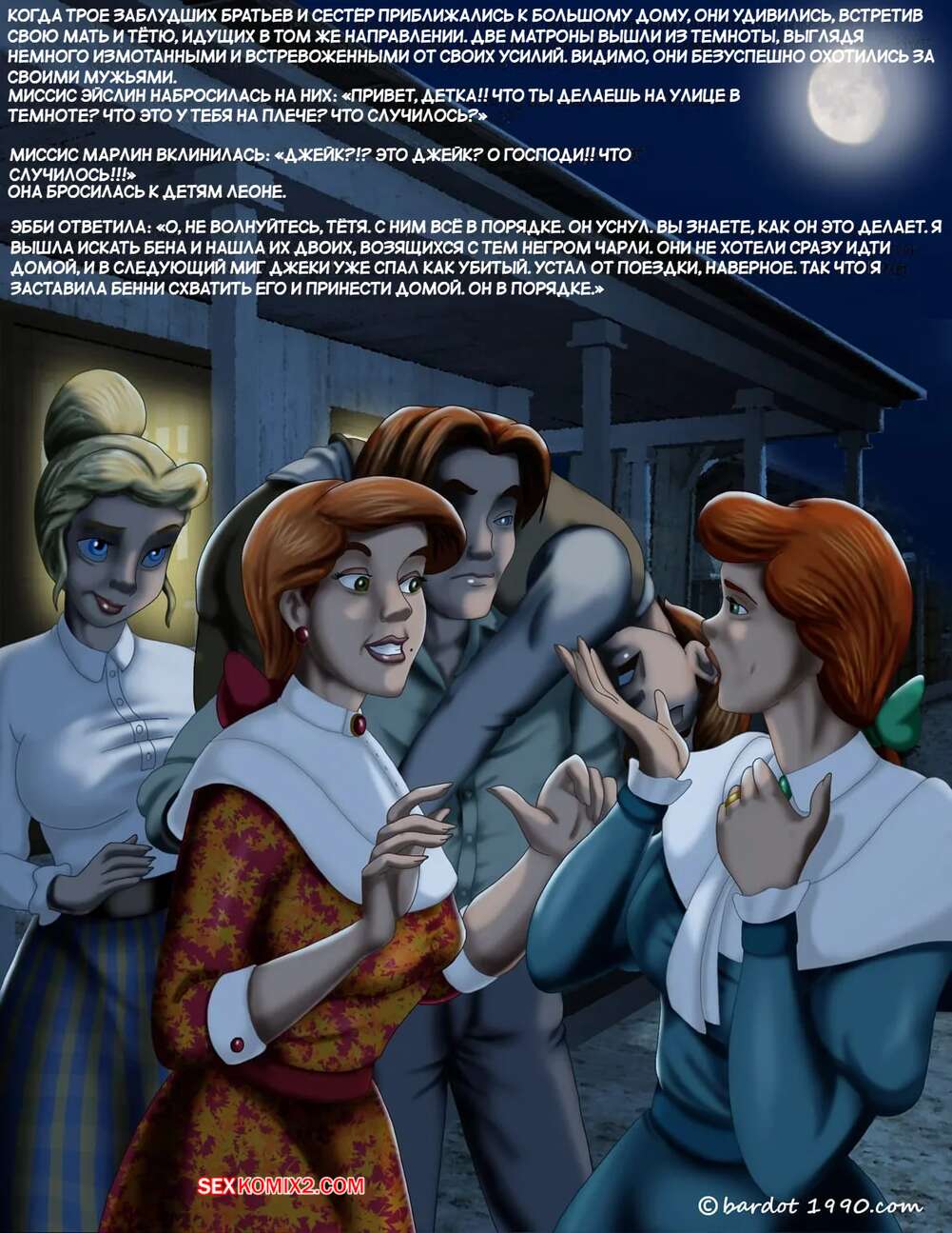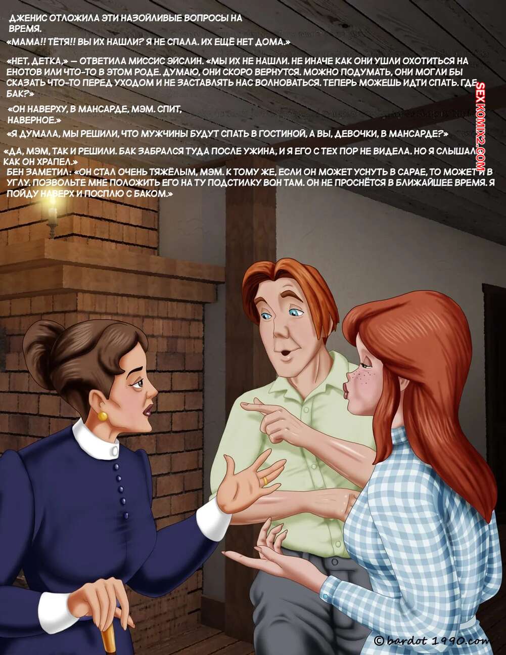 Порно комикс Однажды на юге. Часть 25. Once Upon a Time in the South. Bardot1990 Рыжий парень к отключке, поэтому его дружку пришлось нести парня домой на своих плечах. Их встретила мать парня, которая стала сильно переживать, но девушка смогла ее успокоить.