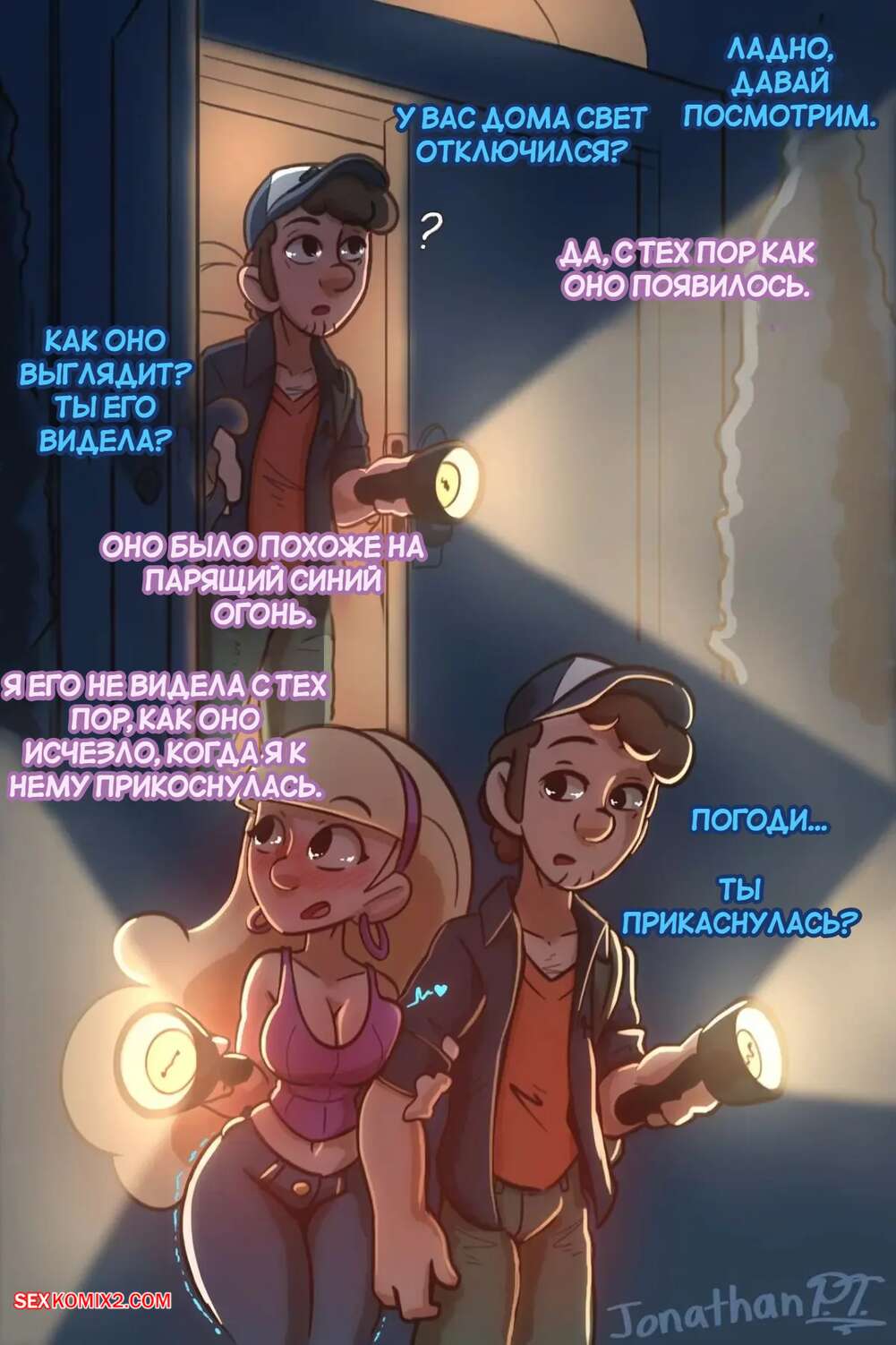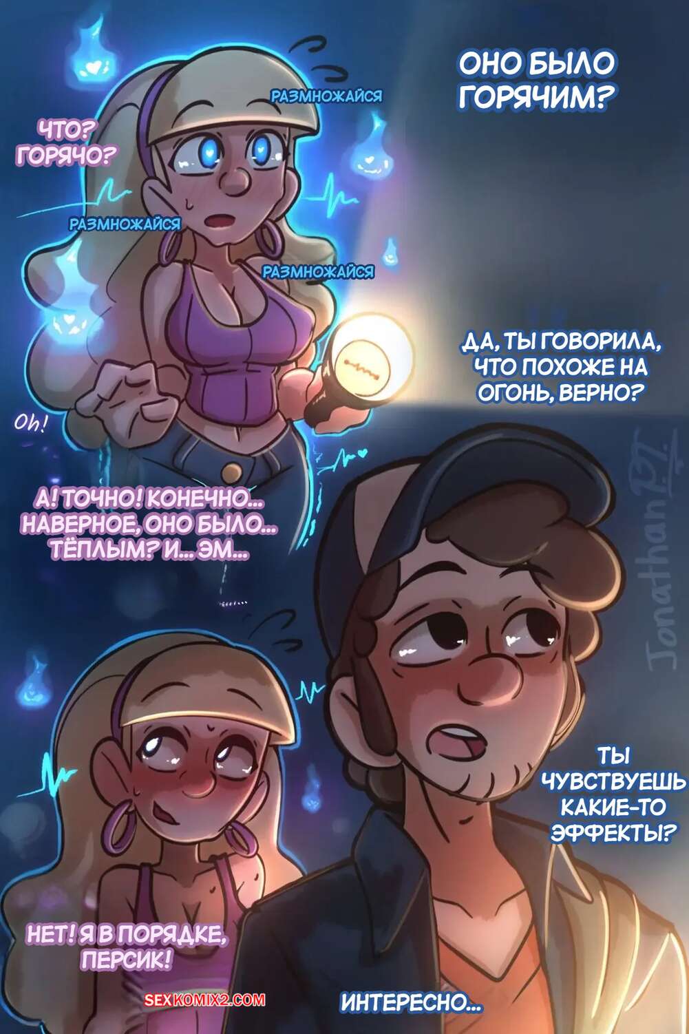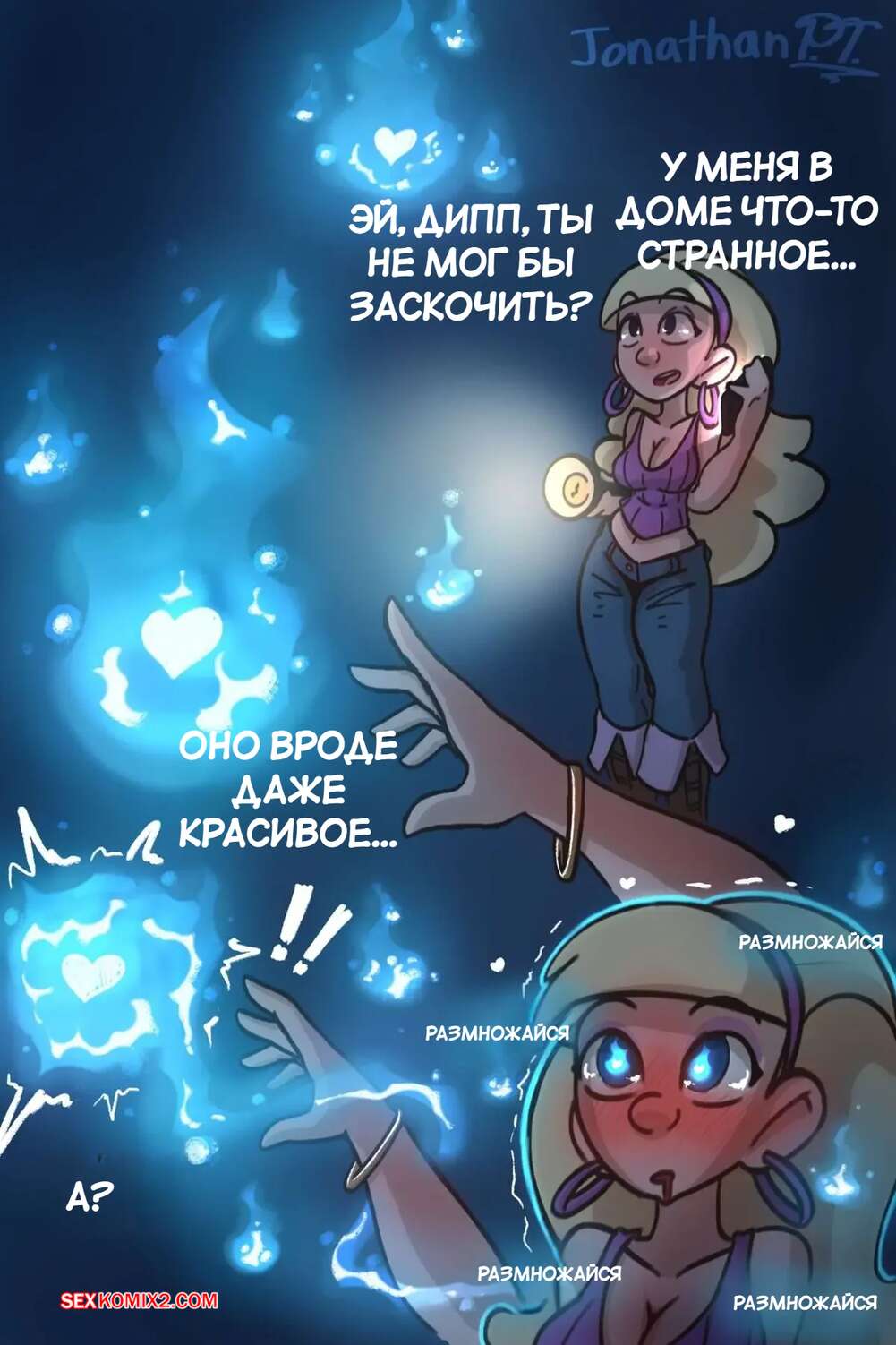 Порно комикс Gravity Falls. Что то странное. Something Weird. JonathanPT. Под воздействием чегото странного Пасифика сильно возбудилась и хочет секса. Красотка разделась и стала сосать член Диппера, после чего раздвинула ножки и дала ему себя выебать.