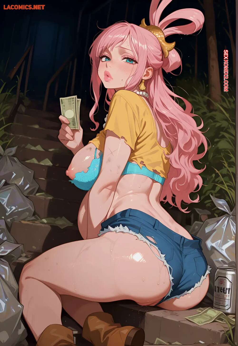 Порно комикс Homeless and Pregant Shirahoshi. Baddiiee Красотка с шикарным телом возбуждена и хочет секса. Она раздевается перед парнями и сосет их большие хуи, после чего раздвигает ножки и дает им себя хорошенько выебать.