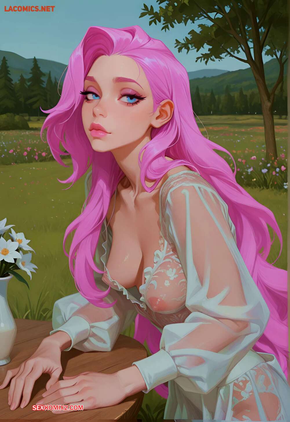 Порно комикс Frilled Lace Blouse SERAPHINE. Baddiiee Аппетитная малышка возбуждена и хочет секса. Она раздевается перед парнем и соблазняет его своими аппетитными прелестями, после чего раздвигает ножки и дает себя трахнуть.