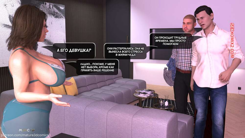 Порно комикс Грязный сосед. Часть 35. Naughty Neighbor. Mature3DComics Молодая красотка встретилась с двумя темнокожими парнями, чтобы пошалить. Она разделась и стала сосать их большие члены, после чего дала выебать свою попку.