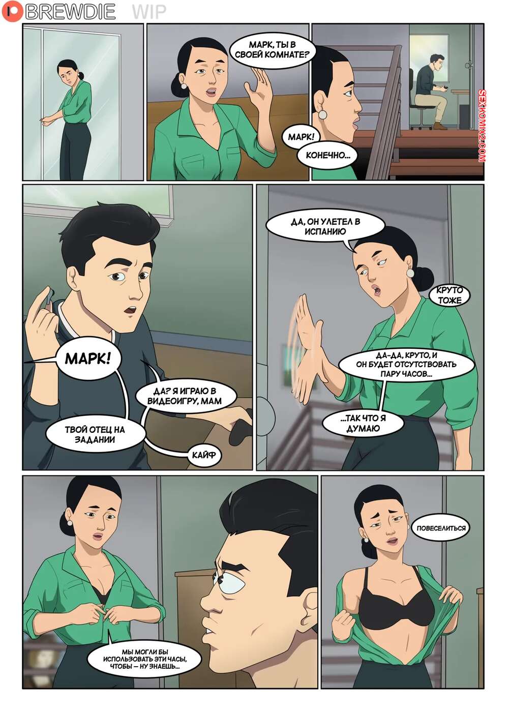 Порно комикс Invincible. Марк и Дебби. Mark x Debbie. Brewdie. Дебби осталась дома одна с сыном и отправилась в комнату к Марку. Красотка разделась и возбудила сына шикарным телом, после чего оседлала его твердый член и дала себя выебать.