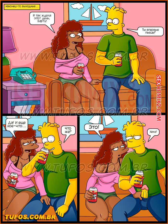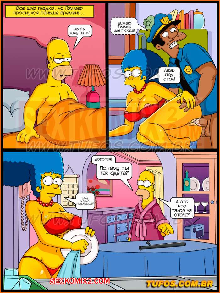 Порно комикс Симпсоны. Часть 34. Дубинка полицейского. Барт пригласил в гости дочь местного полицейского, и только она начали развлекаться как домой вернулась Мардж с отцом гостьи и начали трахаться на кухонном столе. Молодой паре пришлось уединиться в комнате.