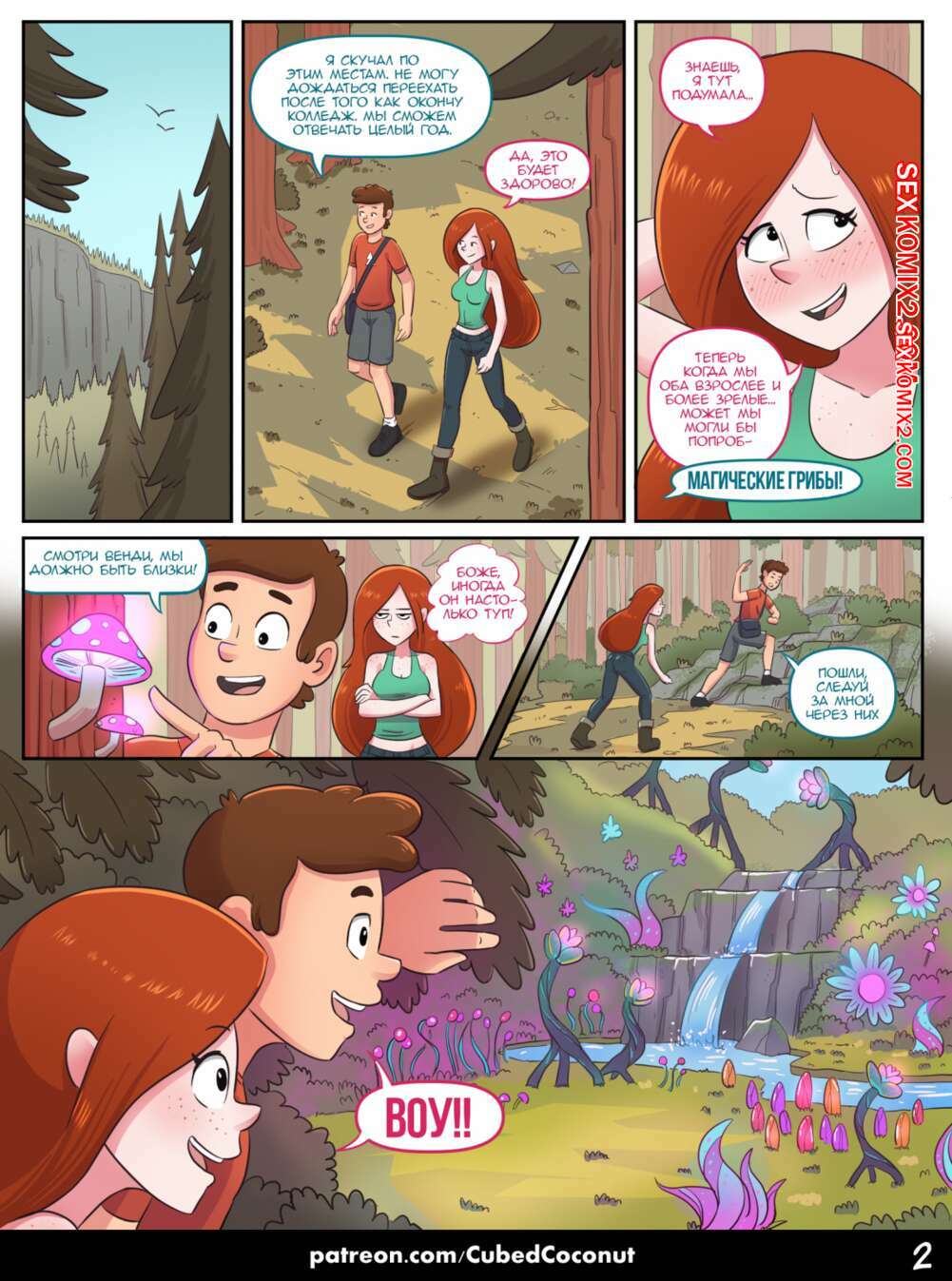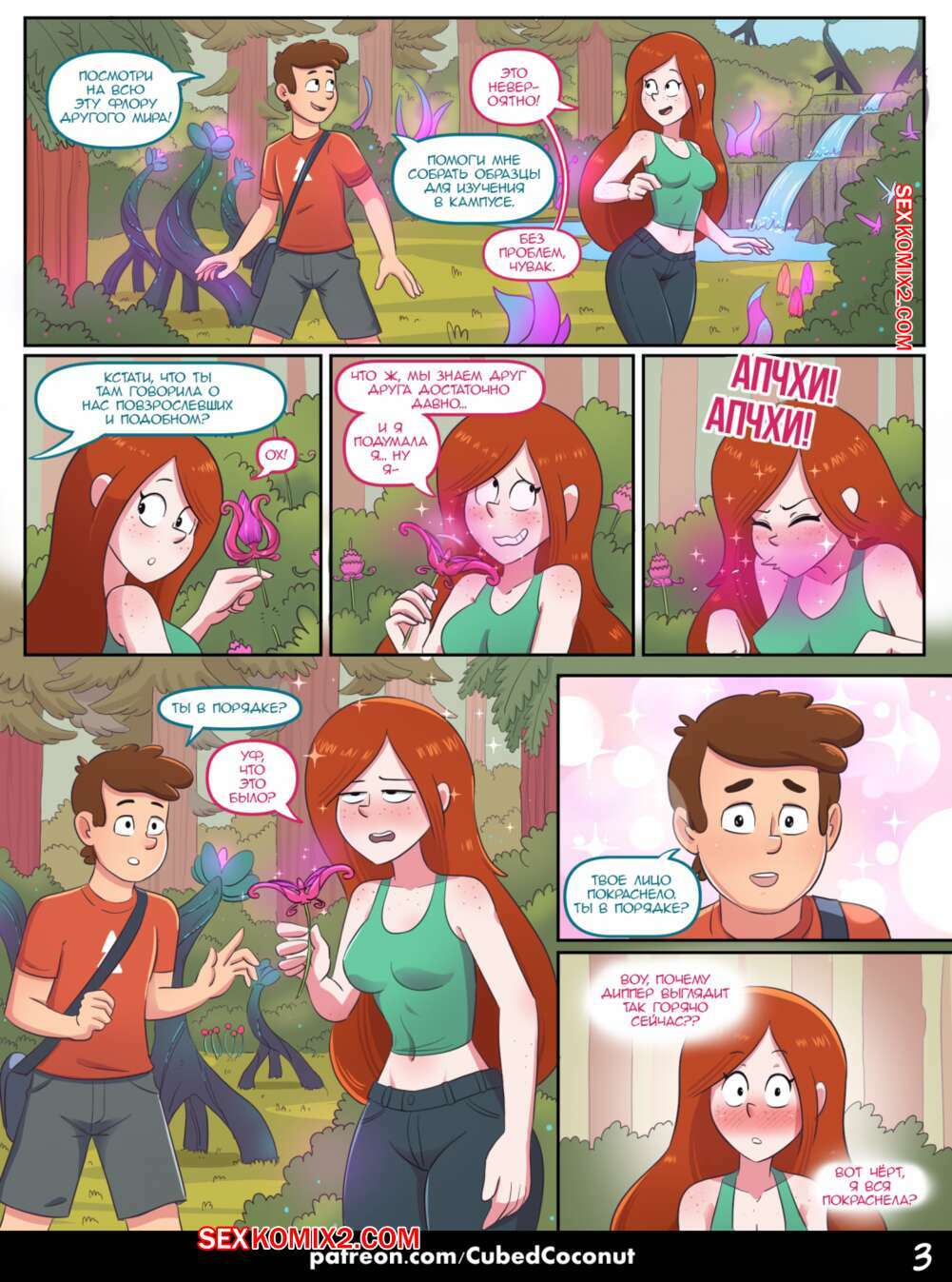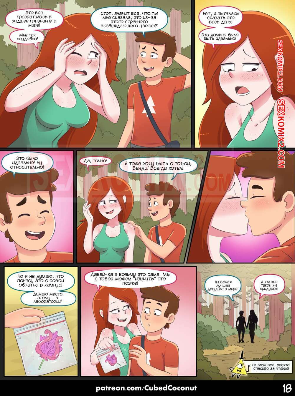 Порно комикс Гравити Фолз. Признание Венди. Wendy Confession Красотка Венди отправилась со своим дружком в лес. Там она попала под влияние загадочного растения, после которого странно стала себя чувствовать и оказалась очень возбуждена..