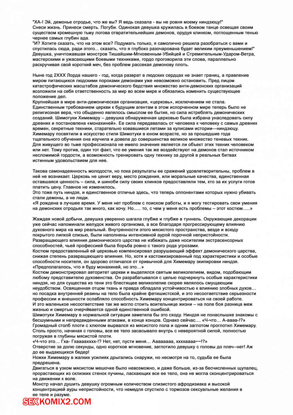 Порно комикс Экзорцистка Химемару. Futsumanin Himemaru Горячую сисястую красотку воительницу схватил огромный монстр с множество щупалец. Он лишил ее возможности двигаться и стал ебать ее во все дырочки своими огромными щупальцами, доставляя красотке огромное удовольствие.