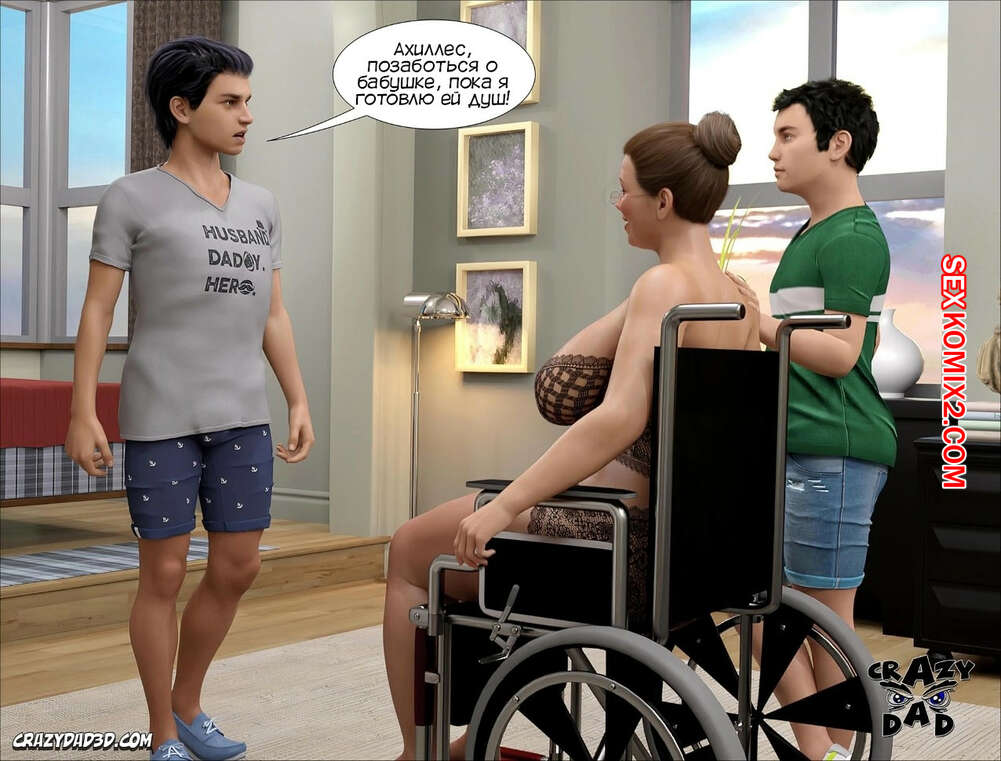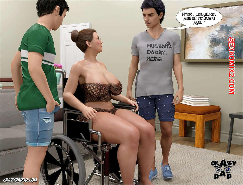 Порно комикс Бабушка. Часть 22. The Grandma. CrazyDad3D Два молодых парня стали заботиться о своей бабушке, после того как она попала в аварию. После того, как они искупали ее в маленьком бассейне, оба парня невероятно возбудились и хорошенько выебали милфу в задницу и пизденку.